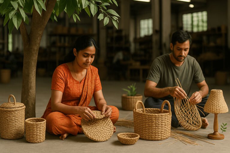 Our mission behind Handicraft Global Artisan Creations is to showcase, promote, and distribute handmade goods that embody authenticity, sustainability, and timeless beauty. Every product is crafted with care by skilled artisans who rely on traditional techniques passed down through generations. These artisans use natural materials such as jute, bamboo, rattan, water hyacinth, clay, wood, and handwoven textiles, ensuring that the crafting process remains environmentally conscious and socially responsible. This approach supports fair trade practices, empowers local communities, and contributes directly to rural economic development.